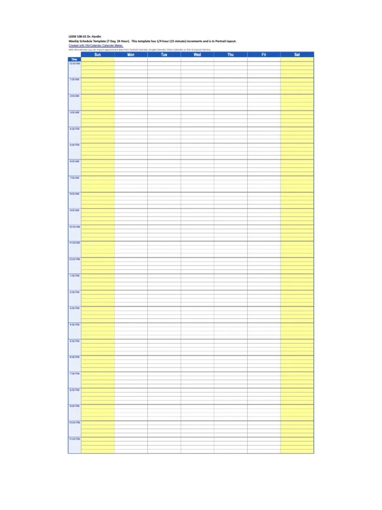 24 Hour Weekly Schedule Printable Template (2914033)